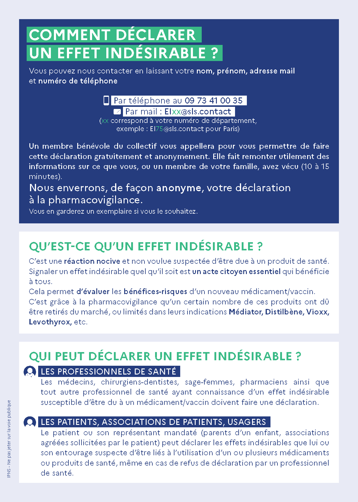 En s’associant à cette action, le SLS souhaite rappeler le devoir des professionnels de santé de déclarer tout symptôme (événement indésirable) qui pourrait